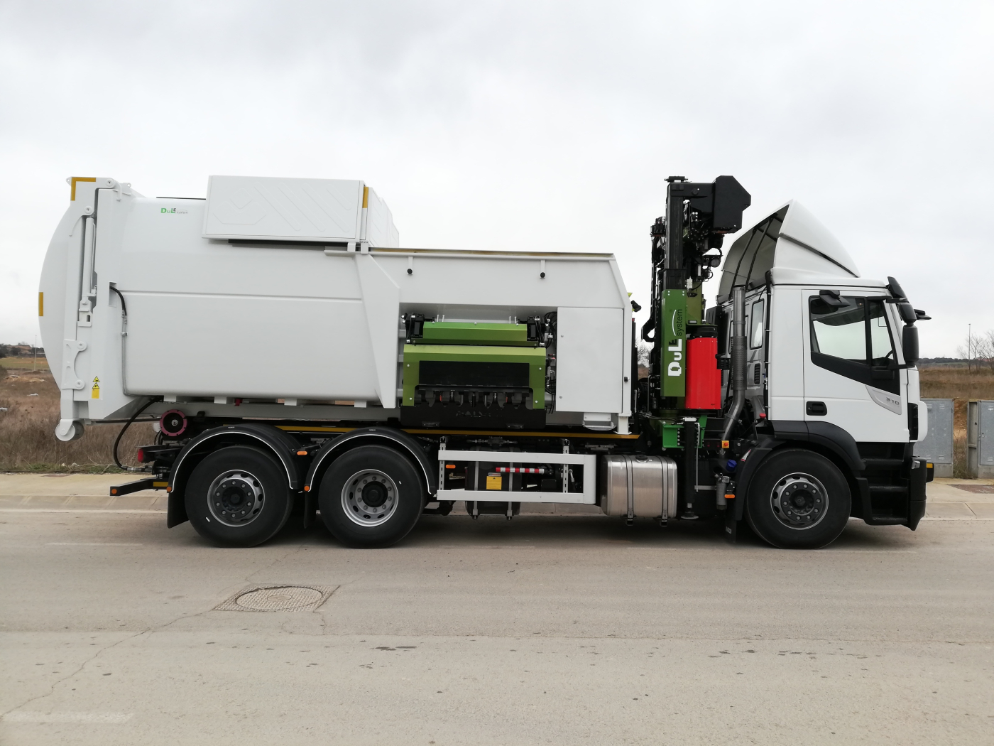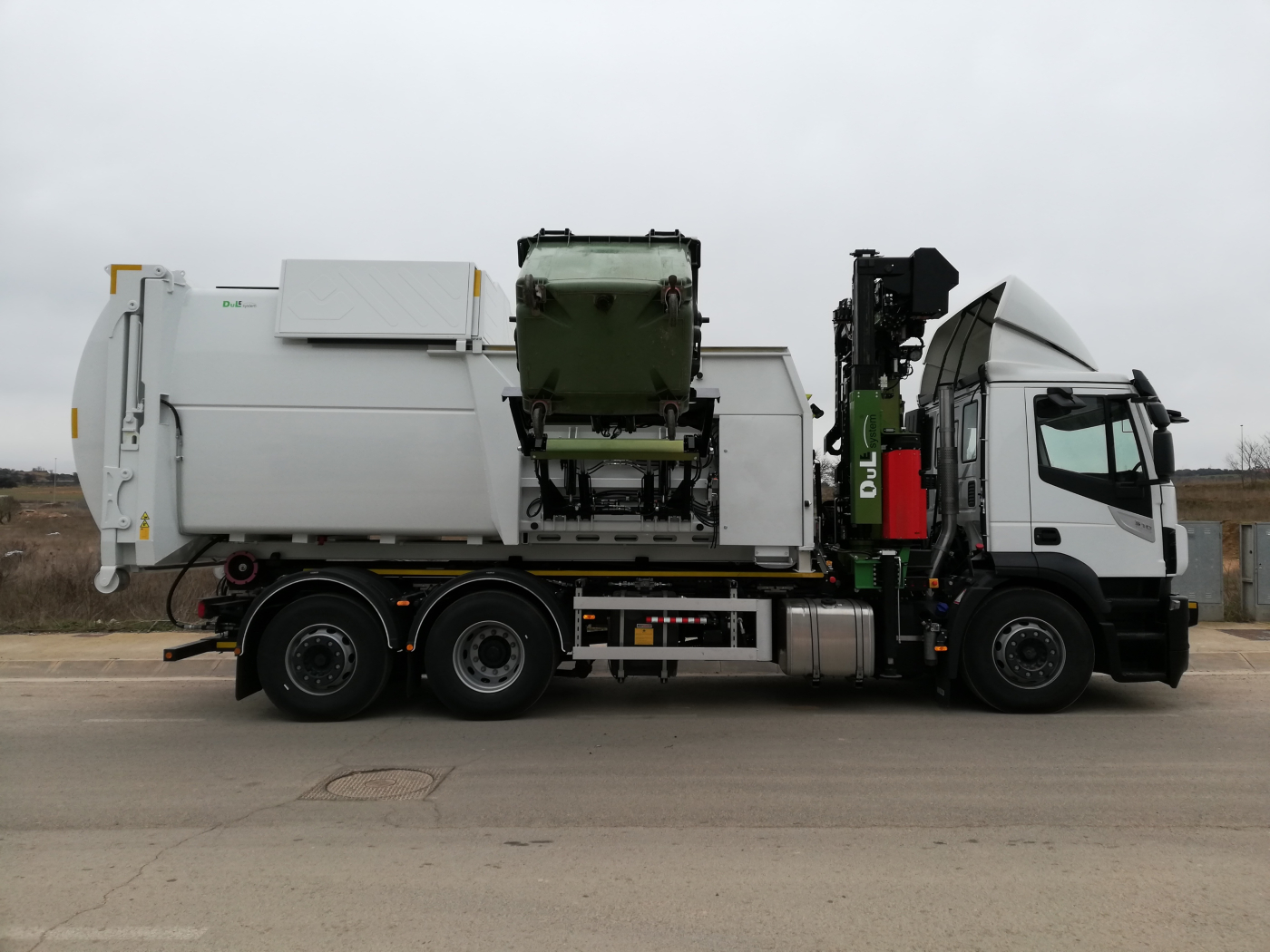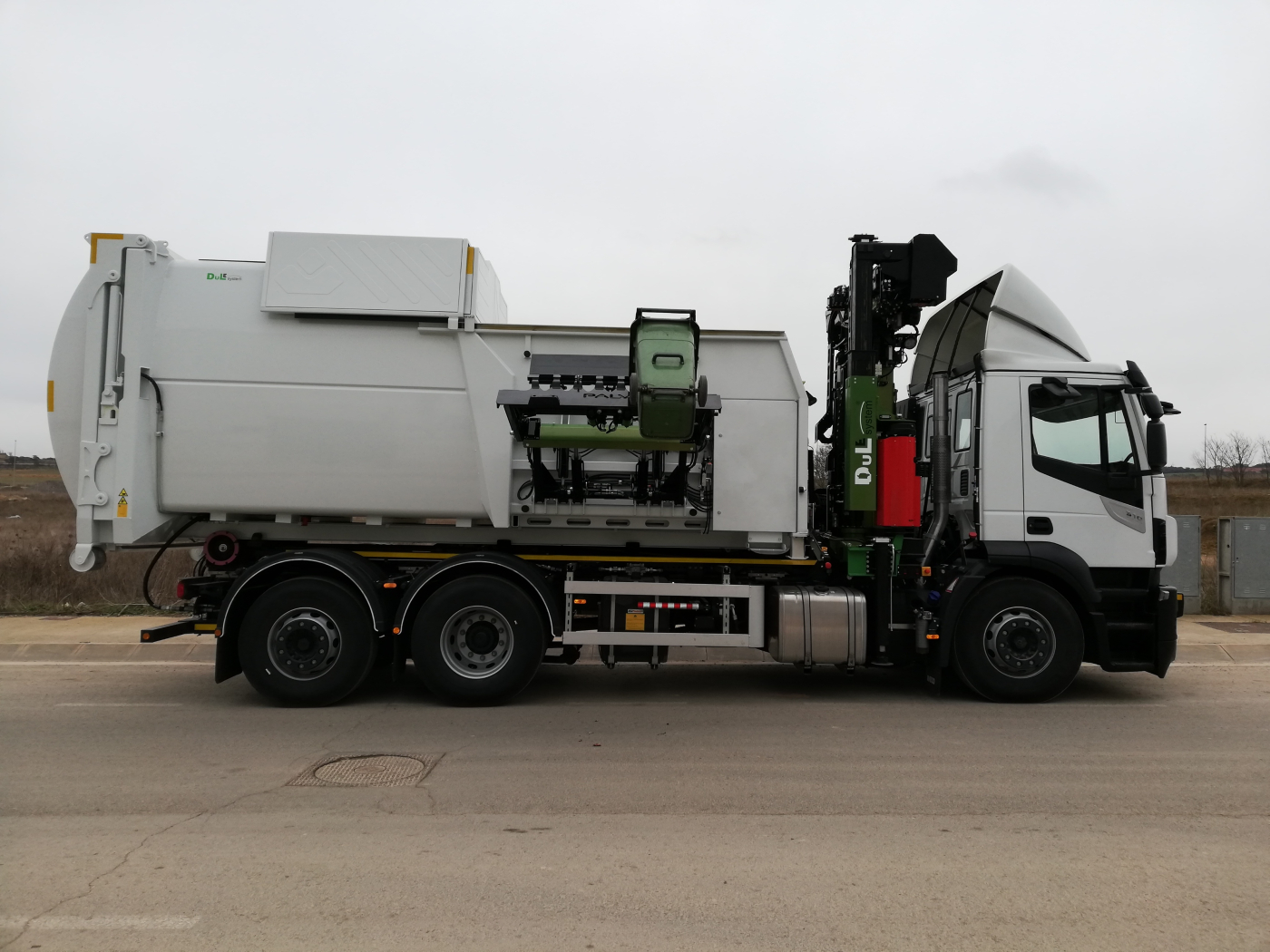 Opcionalmente, se podría incorporar un elevador de contenedores en el lateral y así incluir variedades o particularidades al servicio o recogida a efectuar. Dotando al recolector de este elevador, se permite el vaciado de los contenedores estandarizados habituales de 120, 240 y 360 litros (de dos ruedas) y 800, 1.000 y 1.100 litros (de tapa recta).